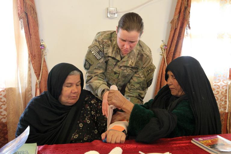 Keywords: 130123-A-PO167-099 (8434741793).jpg U S Army Spc Jasna Perisic center assigned to the 1st Squadron 33rd Cavalry Regiment 3rd Brigade Combat Team 101st Airborne Division Task Force 3/101 helps two Afghan Uniform Police AUP officers practice wrapping a splint during an emergency first aid class as part of basic training for female AUP officers on Matun Hill Khost province Afghanistan Jan 23 2013 DoD photo by Sgt Kimberly Trumbull U S Army/Released https //www flickr com/photos/39955793 N07/8434741793/ 130123-A-PO167-099 2013-01-23 11 31 https //www flickr com/people/39955793 N07 U S Department of Defense Current Photos PD-USGov U S Department of Defense Current Photos https //flickr com/photos/39955793 N07/8434741793 2016-09-03 09 36 56 United States Government Work Afghan Uniformed Police Afghanistan Operation Enduring Freedom United States Department of Defense