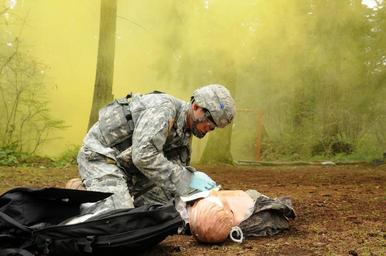Keywords: 130409-A-CD114-505 (8651409263).jpg U S Army 1st Lt Jeff Arruiza with the 758th Forward Surgical Team 47th Combat Support Hospital applies a chest covering to a casualty as part of the training lane for the Expert Field Medic Badge at Joint Base Lewis-McChord Wash April 9 2013 The U S Army Expert Field Medical Badge was awarded to Soldiers in medical professions who pass a variety of tests designed to measure proficiency in medical procedures tactical skills and physical conditioning DoD photo by Staff Sgt David Chapman U S Army/Released https //www flickr com/photos/39955793 N07/8651409263/ 130409-A-CD114-505 2013-04-09 11 54 https //www flickr com/people/39955793 N07 U S Department of Defense Current Photos PD-USGov U S Department of Defense Current Photos https //flickr com/photos/39955793 N07/8651409263 2016-09-03 08 56 06 United States Government Work Joint Base Lewis-McChord United States Department of Defense 758th Forward Surgical Team |