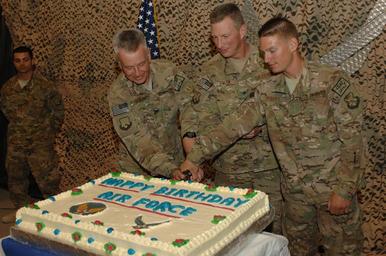 | Keywords: 130918-F-XI929-128 (9900152496).jpg From left U S Air Force Col David Geyer the surgeon general with the 451st Air Expeditionary Wing AEW ; Brig Gen John Dolan the commander of the 451st AEW and Airman 1st Class Adam Piguet cut a cake for the 66th anniversary of the Air Force at Kandahar Airfield Afghanistan Sept 18 2013 DoD photo by Senior Airman Jackie Sanders U S Air Force/Released https //www flickr com/photos/39955793 N07/9900152496/ 130918-F-XI929-128 2013-09-18 05 39 https //www flickr com/people/39955793 N07 U S Department of Defense Current Photos PD-USGov U S Department of Defense Current Photos https //flickr com/photos/39955793 N07/9900152496 2016-09-03 08 17 28 United States Government Work Kandahar International Airport United States Department of Defense |