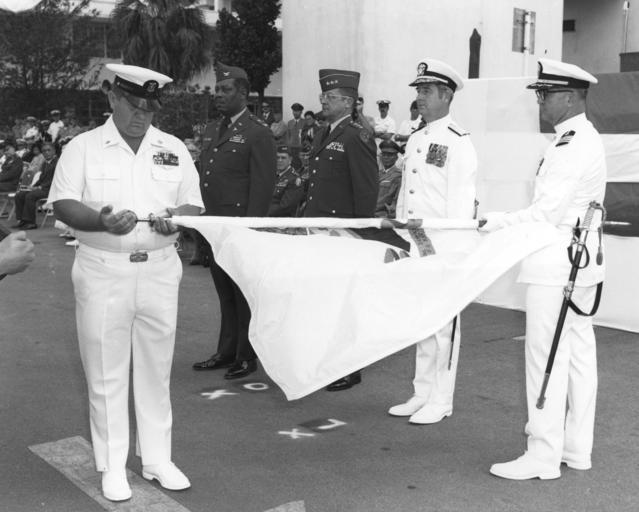 | Keywords: blackandwhite monochrome black and white Captain Lambdin unfurls the Navy Medical Department Colors assisted by HMCM D.E. Fields, (SS) USN, Master Chief Petty Officer of the Command. 13-0104-002 Captain Lambdin unfurls the Navy Medical Department Colors assisted by HMCM D.E. Fields, (SS) USN, Master Chief Petty Officer of the Command. 13-0104-002 |
