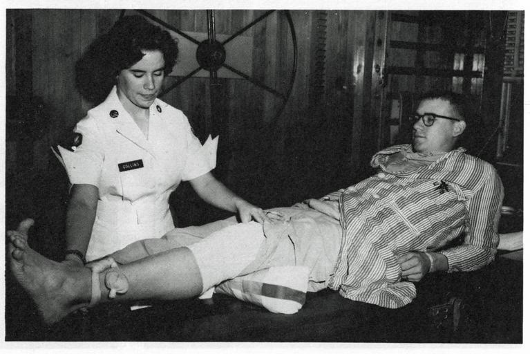 Keywords: people blackandwhite photo border monochrome black and white Physical therapy is administered to a patient with a knee injury at the Medical Center located in Camp Kue, Okinawa, Japan. from "U.S. Army Unofficial Guide Okinawa" p. 18. 13-0104-004 Physical therapy is administered to a patient with a knee injury at the Medical Center located in Camp Kue, Okinawa, Japan. from "U.S. Army Unofficial Guide Okinawa" p. 18. 13-0104-004 |