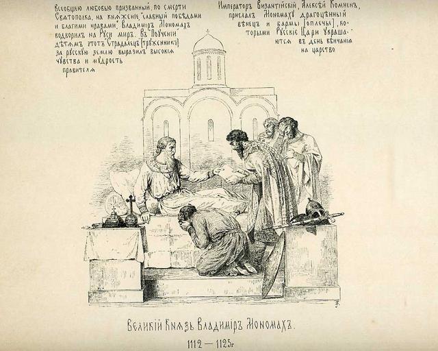 | Keywords: 13 History of the Russian state in the image of its sovereign rulers.jpg ru Великий Князь Владими ономах 1112-1125 г <br>Всеобщею любовью п изванный по сме ти Святополка на княжение славный победами и благими н авами Владими ономах водво ил на Руси ми В Поучении детям этот Ст адалец т уженник за усскую землю вы азил высокие чувства и муд ость п авителя Импе ато Византийский Алексей Комнен п ислал ономаху д агоценный венец и ба мы оплечье кото ыми Русские ца и ук ашаются в день венчания на ца ство full 13 History of the Russian state in the image of its sovereign rulers - fragment jpg Vladimir II Monomakh in engravings |