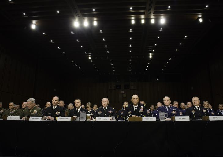 Keywords: 140506-D-HU462-129 (14190837343).jpg From left Commandant of the U S Marine Corps Gen James F Amos; Chief of Naval Operations Navy Adm Jonathan W Greenert; Vice Chairman of the Joint Chiefs of Staff Navy Adm James A Winnefeld Jr ; Chairman of the Joint Chiefs of Staff Army Gen Martin E Dempsey; Chief of Staff of the Army Gen Raymond T Odierno; Chief of Staff of the Air Force Gen Mark A Welsh III; and Chief of the National Guard Bureau Army Gen Frank J Grass testify before the Senate Armed Services Committee on Department of Defense proposals relating to military compensation May 6 2014 in Washington D C DoD photo by Staff Sgt Sean K Harp U S Army/Released https //www flickr com/photos/39955793 N07/14190837343/ 140506-D-HU462-129 2014-05-06 09 36 https //www flickr com/people/39955793 N07 U S Department of Defense Current Photos PD-USGov U S Department of Defense Current Photos https //flickr com/photos/39955793 N07/14190837343 2016-09-03 06 57 17 United States Government Work District of Columbia Hearing Law Testimony Hart District United States Department of Defense |