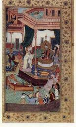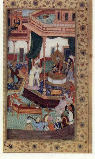 Keywords: 1494-Babur enthroned.png en The Memoirs of Babur or Baburnama are the work of the great-great-great-grandson of Timur Tamerlane Zahiruddin Muhammad Babur 1483-1530 The Baburnama tells the tale of the prince's struggle first to assert and defend his claim to the throne of Samarkand and the region of the Fergana Valley After being driven out of Samarkand in 1501 by the Uzbek Shaibanids he ultimately sought greener pastures first in Kabul and then in northern India where his descendants were the Moghul Mughal dynasty ruling in Delhi until 1858 The miniatures are from an illustrated copy of the Baburnama prepared for the author's grandson the Mughal Emperor Akbar It is worth remembering that the miniatures reflect the culture of the court at Delhi; hence for example the architecture of Central Asian cities resembles the architecture of Mughal India Nonetheless these illustrations are important as evidence of the tradition of exquisite miniature painting which developed at the court of Timur and his successors Timurid miniatures are among the greatest artistic achievements of the Islamic world in the fifteenth and sixteenth centuries Illustrations of Mughals from the Baburnama 183-1530 http //warfare uphero com/Moghul/Baburnama/Baburnama htm Baburnama Painters of Babur PD-old-100 Baburnama Uploaded with UploadWizard Original upload log wikitable - - 2012-11-06 15 05 58 534 × 889 250517 bytes Baloo1000 <nowiki>User created page with UploadWizard</nowiki> |