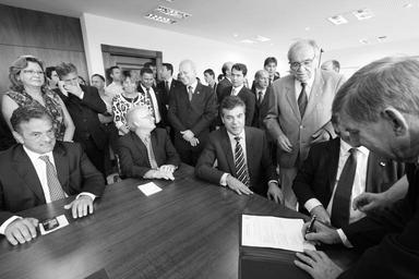 | Keywords: elio rusch eliorusch plauto miró plautomiró valdir rossoni valdirrossoni duilio genari duiliogenari ademar traiano ademartraiano beto richa betoricha adelino ribeiro adelinoribeiro alexandre curi alexandrecuri paranhos blackandwhite groupshot people monochrome indoor black and white Deputados participam da solenidade de assinatura de convênios para investimentos em escolas do Paraná. Foto: Nani Gois/Alep (crédito obrigatório) Deputados participam da solenidade de assinatura de convênios para investimentos em escolas do Paraná. Foto: Nani Gois/Alep (crédito obrigatório) |