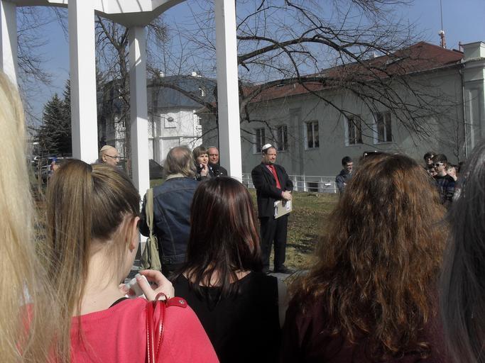 | Keywords: 14 3 2014 - zidovska obec Teplice 11.JPG cs Teplická židovská obec Teplice si dne 14 března 2014 připomíná 600 let od příchodu Židů do Teplic a zároveň i 75 let od vypálení Teplické synagogy během tzv Křišťálové noci U mikrofonu historička Lenka Burgerová own Safranek-interia eu 14 března 2014 Memorial to synagogue in Teplice 2014 Jewish memorial meeting in Teplice Cc-zero | ||||