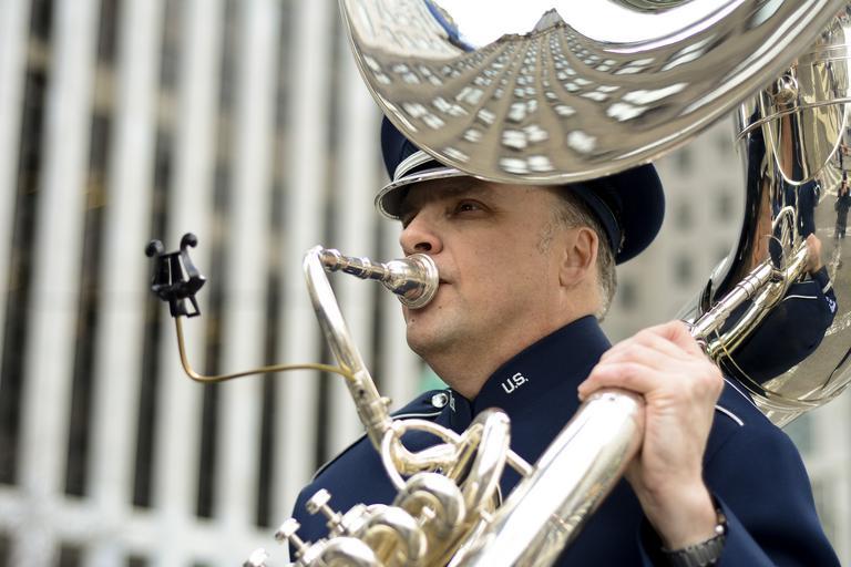 | Keywords: air force usaf ang national guard ngb buehrer eu280 z instrumentalist musician band northeast new york city st. st patrick’s day parade airmen million spectators fifth avenue community relations comrel march play instrument celebration irish northcom peoria il usa U.S. Air Force Tech. Sgt. Gregory S. Dunn, an instrumentalist with the 566th Air Force Band, performs with the Air National Guard Band of the Northeast in the New York City St. Patrick's Day Parade in New York March 17, 2015. The band played for spectators along the parade’s Fifth Avenue route as part of its community relations mission. (U.S. Air National Guard photo by Staff Sgt. Lealan Buehrer/Released) U.S. Air Force Tech. Sgt. Gregory S. Dunn, an instrumentalist with the 566th Air Force Band, performs with the Air National Guard Band of the Northeast in the New York City St. Patrick's Day Parade in New York March 17, 2015. The band played for spectators along the parade’s Fifth Avenue route as part of its community relations mission. (U.S. Air National Guard photo by Staff Sgt. Lealan Buehrer/Released) |