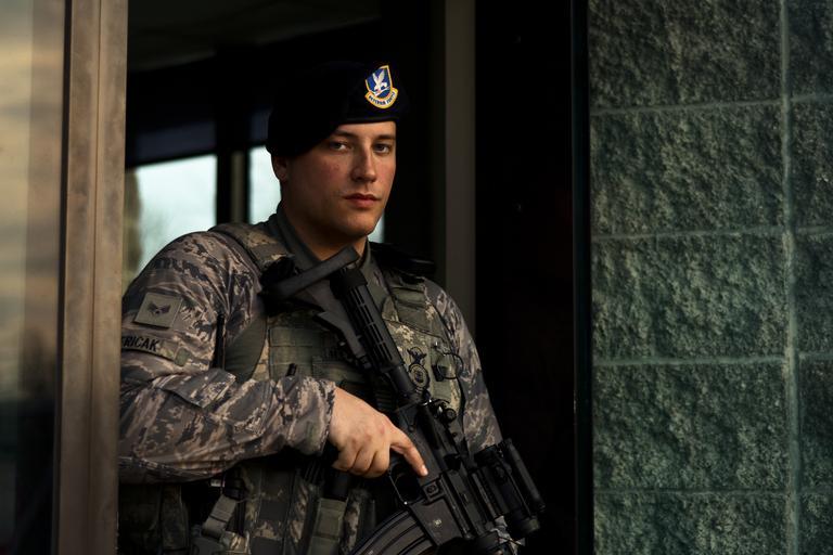 Keywords: air force usaf 182 aw 182nd airlift wing peoria illinois ill ang national guard il angb ngb mobility command amc buehrer eu280 z #afd2015 afd2015 armed forces day sfs security 3n0x1 protection military police mp second shift usa people U.S. Air Force Senior Airman Scott J. Pericak, an installation entry controller with the 182nd Security Forces Squadron, watches the outbound lane during second shift at the 182nd Airlift Wing main gate in Peoria, Ill., April 8, 2015. Security forces Airmen are the force protection element of the Air Force, ensuring protection of base personnel, property and resources 24/7. (U.S. Air National Guard photo by Staff Sgt. Lealan Buehrer/Released) U.S. Air Force Senior Airman Scott J. Pericak, an installation entry controller with the 182nd Security Forces Squadron, watches the outbound lane during second shift at the 182nd Airlift Wing main gate in Peoria, Ill., April 8, 2015. Security forces Airmen are the force protection element of the Air Force, ensuring protection of base personnel, property and resources 24/7. (U.S. Air National Guard photo by Staff Sgt. Lealan Buehrer/Released) |
