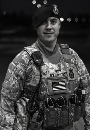 Keywords: air force usaf 182 aw 182nd airlift wing peoria illinois ill ang national guard il angb ngb mobility command amc buehrer eu280 z #afd2015 afd2015 armed forces day sfs security 3n0x1 protection main gate night second shift military police mp usa people blackandwhite black and white U.S. Air Force Tech. Sgt. Justin N. Smith, an installation entry controller with the 182nd Security Forces Squadron, works second shift at the 182nd Airlift Wing main gate in Peoria, Ill., April 8, 2015. Security forces Airmen are the force protection element of the Air Force, ensuring protection of base personnel, property and resources 24/7. (U.S. Air National Guard photo by Staff Sgt. Lealan Buehrer/Released) U.S. Air Force Tech. Sgt. Justin N. Smith, an installation entry controller with the 182nd Security Forces Squadron, works second shift at the 182nd Airlift Wing main gate in Peoria, Ill., April 8, 2015. Security forces Airmen are the force protection element of the Air Force, ensuring protection of base personnel, property and resources 24/7. (U.S. Air National Guard photo by Staff Sgt. Lealan Buehrer/Released)