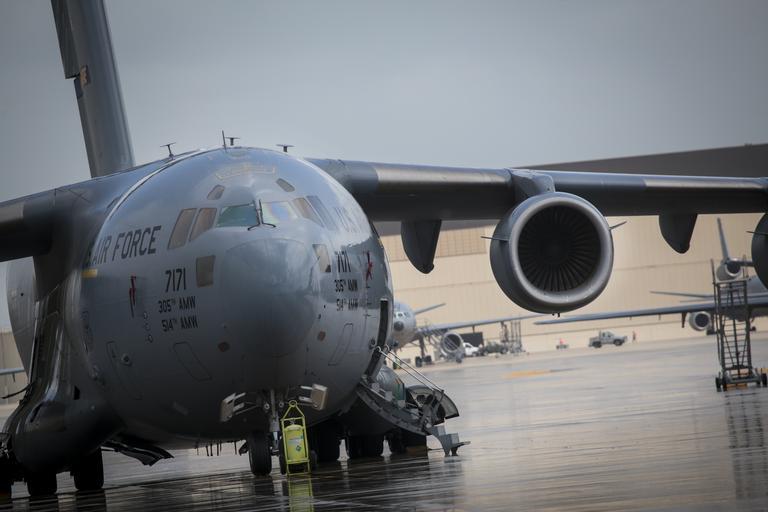 | Keywords: usa u.s. army usarmy usaf u.s. air force usairforce ang air national guard airnationalguard air mobility command airmobilitycommand joint base mcguire-dix-lakehurst jointbasemcguiredixlakehurst joint base mdl jointbasemdl aviation airplane cargo c-17 c17 globemaster 50th ibct 50thibct new jersey army national guard newjerseyarmynationalguard new jersey newjersey national guard nationalguard n.j. nj public domain royalty free getty reuters ap public domain publicdomain royalty free royaltyfree military aircraft photo photograph combat iraq afghanistan war operation enduring freedom operationenduringfreedom operation iraqi freedom operationiraqifreedom f-16 f16 fighting falcon fightingfalcon strike eagle strikeeagle sunrise sunset air force one airforceone red flag alaska redflagalaska green flag east combat eastcombat aviation pilot pilots military aviationpilotpilotsmilitary pilot helicopter helo rotary wing fixed wing fixedwing jet fighter plane A U.S. Air Force C-17 Globemaster III (front) and two KC-10 Extenders, all from the 305th Air Mobility Wing sit on the flight line at Joint Base McGuire-Dix-Lakehurst after a rain storm on May 11, 2015. (U.S. Air National Guard photo by Tech. Sgt. Matt Hecht/Released) A U.S. Air Force C-17 Globemaster III (front) and two KC-10 Extenders, all from the 305th Air Mobility Wing sit on the flight line at Joint Base McGuire-Dix-Lakehurst after a rain storm on May 11, 2015. (U.S. Air National Guard photo by Tech. Sgt. Matt Hecht/Released) |