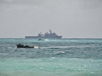 Keywords: bellows air force base bellowsairforcebase hawaii usa outdoor vehicle boat Amphibious Assualt Vehicles, with Battalion Landing Team, 15th Marine Expeditionary Unit, conduct an amphibious landing demonstration at Marine Corps Training Area Bellows, Hawaii May 19, 2015. The landing is part of Culebra Koa 15, an on-going joint sea-basing exercise taking place in Hawaii during the MARFORPAC-hosted U.S. Pacific Command Amphibious Leaders Symposium (PALS). PALS is designed to bring together senior leaders of allies and partners Marine Corps, naval infantries, and militaries spanning the Indo-Asia-Pacific region with interest in military amphibious capability development. This year, 22 nations sent representatives to observe the training. (U.S. Marine Corps photo by Cpl.Hilda Becerra) Amphibious Assualt Vehicles, with Battalion Landing Team, 15th Marine Expeditionary Unit, conduct an amphibious landing demonstration at Marine Corps Training Area Bellows, Hawaii May 19, 2015. The landing is part of Culebra Koa 15, an on-going joint sea-basing exercise taking place in Hawaii during the MARFORPAC-hosted U.S. Pacific Command Amphibious Leaders Symposium (PALS). PALS is designed to bring together senior leaders of allies and partners Marine Corps, naval infantries, and militaries spanning the Indo-Asia-Pacific region with interest in military amphibious capability development. This year, 22 nations sent representatives to observe the training. (U.S. Marine Corps photo by Cpl.Hilda Becerra) |
