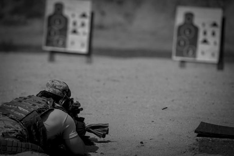 | Keywords: u.s. air force usairforce united states air force unitedstatesairforce usaf air national guard airnationalguard ang acc air combat command aircombatcommand tacp tactical air control party tacticalaircontrolparty jtac joint terminal attack controller jointterminalattackcontroller sf security forces securityforces security police securitypolice range weapons qualification course of fire courseoffire joint base mdl jointbasemdl catm combat arms combatarms military 177th fighter wing 177thfighterwing 227th air support operations squadron 227thairsupportoperationssquadron joint base mcguire-dix-lakehurst jointbasemcguiredixlakehurst n.j. nj usa public domain royalty free getty reuters ap blackandwhite monochrome depth of field black and white A security forces specialist from the New Jersey Air National Guard's 177th Security Forces Squadron fires an M4 rifle at targets during weapons qualification on Joint Base McGuire-Dix-Lakehurst, N.J., June 10, 2015. (U.S. Air National Guard photo by Tech. Sgt. Matt Hecht/Released) A security forces specialist from the New Jersey Air National Guard's 177th Security Forces Squadron fires an M4 rifle at targets during weapons qualification on Joint Base McGuire-Dix-Lakehurst, N.J., June 10, 2015. (U.S. Air National Guard photo by Tech. Sgt. Matt Hecht/Released) |