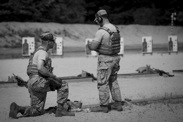 Keywords: u.s. air force usairforce united states air force unitedstatesairforce usaf air national guard airnationalguard ang acc air combat command aircombatcommand tacp tactical air control party tacticalaircontrolparty jtac joint terminal attack controller jointterminalattackcontroller sf security forces securityforces security police securitypolice range weapons qualification course of fire courseoffire joint base mdl jointbasemdl catm combat arms combatarms military 177th fighter wing 177thfighterwing 227th air support operations squadron 227thairsupportoperationssquadron joint base mcguire-dix-lakehurst jointbasemcguiredixlakehurst n.j. nj usa public domain royalty free getty reuters ap blackandwhite monochrome outdoor black and white Security forces specialists from the New Jersey Air National Guard's 177th Security Forces Squadron refill on ammunition during weapons qualifications on Joint Base McGuire-Dix-Lakehurst, N.J., June 10, 2015. (U.S. Air National Guard photo by Tech. Sgt. Matt Hecht/Released) Security forces specialists from the New Jersey Air National Guard's 177th Security Forces Squadron refill on ammunition during weapons qualifications on Joint Base McGuire-Dix-Lakehurst, N.J., June 10, 2015. (U.S. Air National Guard photo by Tech. Sgt. Matt Hecht/Released)