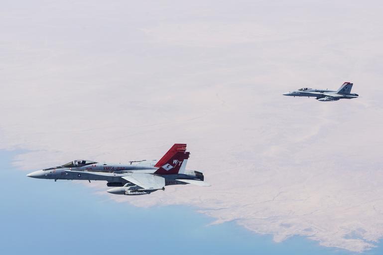 | Keywords: u.s. marines usmarines marine corps marinecorps f/a-18 fa18 f-18 f18 marcent marcent (fwd) marcentfwd spmagtf-cr-cc spmagtfcrcc vmfa-232 vmfa232 red devils reddevils operation inherent resolve operationinherentresolve oir iraq air to air airtoair refuel combat flights combatflights canada joint op impact opimpact close air support closeairsupport airstrikes coalition 3d maw 3dmaw 3d marine aircraft wing 3dmarineaircraftwing isil iq outdoor airplane aircraft vehicle U.S. Marine Corps F/A-18s with Marine Fighter Attack Squadron 232 link up and perform an Air to Air refuel with a Royal Canadian Air Force CC-150 Polaris air-to-air refueller during a combat mission in the skies of Iraq on July 19, 2015. The ‘Red Devils’ of VMFA-232 are currently deployed with the Special Purpose Marine Air Ground Task Force-Crisis Response-Central Command and provide offensive strike and close air support to Operation Inherent Resolve and the global fight against the Islamic State of Syria and the Levant. (Courtesy Photo by Op IMPACT) U.S. Marine Corps F/A-18s with Marine Fighter Attack Squadron 232 link up and perform an Air to Air refuel with a Royal Canadian Air Force CC-150 Polaris air-to-air refueller during a combat mission in the skies of Iraq on July 19, 2015. The ‘Red Devils’ of VMFA-232 are currently deployed with the Special Purpose Marine Air Ground Task Force-Crisis Response-Central Command and provide offensive strike and close air support to Operation Inherent Resolve and the global fight against the Islamic State of Syria and the Levant. (Courtesy Photo by Op IMPACT) |