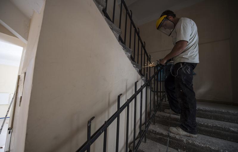 Keywords: eucom hca humanitarian civic assistance humanitariancivicassistance 435th af georgia tbilisi 435th agow 435thagow 435th cts 435thcts construction usaf usafe renovations building partnership capacity buildingpartnershipcapacity nato united helping nations helpingnations airmen school gymnasium u.s. military engineers usmilitaryengineers europe georgian army georgianarmy u.s. army civil engineers usarmycivilengineers gori U.S. Air Force Staff Sgt. Patrick Murphy, 435th Construction Training Squadron pavement and equipment operator, levels the metal poles before placing new railings on the stairs of Public School No. 4 in Gori, Georgia, Aug. 28, 2015. A team of U.S. Air Force engineers, 10 Georgian army engineers and Georgian civilian contractors worked for one month to completely renovate the gymnasium, bathrooms and hallways of the school to make the school more accessible to disabled children and give all the students a better learning environment. Humanitarian and Civic Assistance projects enhance operational readiness of military personnel while providing mutual support to the host nation's population. (U.S. Air Force photo/Staff Sgt. Sara Keller) U.S. Air Force Staff Sgt. Patrick Murphy, 435th Construction Training Squadron pavement and equipment operator, levels the metal poles before placing new railings on the stairs of Public School No. 4 in Gori, Georgia, Aug. 28, 2015. A team of U.S. Air Force engineers, 10 Georgian army engineers and Georgian civilian contractors worked for one month to completely renovate the gymnasium, bathrooms and hallways of the school to make the school more accessible to disabled children and give all the students a better learning environment. Humanitarian and Civic Assistance projects enhance operational readiness of military personnel while providing mutual support to the host nation's population. (U.S. Air Force photo/Staff Sgt. Sara Keller) |