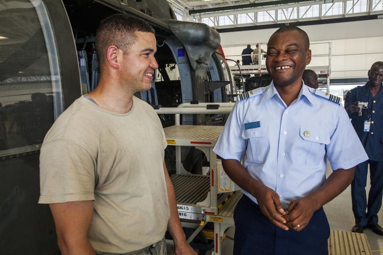 | Keywords: african air forces africanairforces african partnership flight africanpartnershipflight africom tour visit conference army aviation support facility armyaviationsupportfacility aasf uh-60a black hawk uh60ablackhawk black hawk blackhawk uh-60a uh60a uh-60 uh60 helicopter helicopters 1-150th assault helicopter battalion 1150thassaulthelicopterbattalion 1-150 ahb 1150ahb new jersey army national guard newjerseyarmynationalguard njarng new jersey national guard newjerseynationalguard njng army national guard armynationalguard arng soldier soldiers aviator aviators crew chief crewchief national guard nationalguard ng u.s. air forces in europe usairforcesineurope usafe u.s. air forces africa usairforcesafrica usafa maintenance logistics knowledge procedures regional military to military events regionalmilitarytomilitaryevents aviation capacity aviationcapacity enhance regional cooperation enhanceregionalcooperation cooperation increase interoperability increaseinteroperability interoperability africa angola burkina faso burkinafaso ghana mali niger nigeria senegal tunisia military united states air force unitedstatesairforce usaf air force airforce af joint base mcguire-dix-lakehurst jointbasemcguiredixlakehurst jbmdl n.j. nj new jersey newjersey aug. 31 2015 aug312015 photo by master sgt. mark c. olsen photobymastersgtmarkcolsen u.s. us Visiting African air force members tour the New Jersey Army National Guard’s Army Aviation Support Facility during an AFRICOM conference at Joint Base McGuire-Dix-Lakehurst, N.J., Aug. 31, 2015. The African Partnership Flight visit to the Facility is part of a U.S. Air Forces in Europe and U.S. Air Forces Africa program, which includes military representatives from Angola, Burkina Faso, Ghana, Mali, Niger, Nigeria, Senegal and Tunisia that emphasized increased maintenance and logistics knowledge and procedures. The program was created to conduct regional military to military events with African air forces to build aviation capacity, enhance regional cooperation and increase interoperability. (U.S. Air National Guard photo by Master Sgt. Mark C. Olsen/Released) Visiting African air force members tour the New Jersey Army National Guard’s Army Aviation Support Facility during an AFRICOM conference at Joint Base McGuire-Dix-Lakehurst, N.J., Aug. 31, 2015. The African Partnership Flight visit to the Facility is part of a U.S. Air Forces in Europe and U.S. Air Forces Africa program, which includes military representatives from Angola, Burkina Faso, Ghana, Mali, Niger, Nigeria, Senegal and Tunisia that emphasized increased maintenance and logistics knowledge and procedures. The program was created to conduct regional military to military events with African air forces to build aviation capacity, enhance regional cooperation and increase interoperability. (U.S. Air National Guard photo by Master Sgt. Mark C. Olsen/Released) |