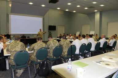 | Keywords: room indoor auditorium hall 150911-N-SS492-020 NAPLES, Italy (Sept. 11, 2015) Naval Forces Europe-Africa Fleet Master Chief Steven Giordano speaks with senior enlisted representatives from eight nations during the 2015 Eurasia Partnership Senior NCO Development Workshop, Sept. 11, 2015. The four-day event is geared towards learning and sharing experiences, fostering the growth of senior enlisted ranks across the participating nations. (U.S. Navy photo by Chief (Select) Mass Communication Specialist Brian P. Biller/Released) 150911-N-SS492-020 NAPLES, Italy (Sept. 11, 2015) Naval Forces Europe-Africa Fleet Master Chief Steven Giordano speaks with senior enlisted representatives from eight nations during the 2015 Eurasia Partnership Senior NCO Development Workshop, Sept. 11, 2015. The four-day event is geared towards learning and sharing experiences, fostering the growth of senior enlisted ranks across the participating nations. (U.S. Navy photo by Chief (Select) Mass Communication Specialist Brian P. Biller/Released) |