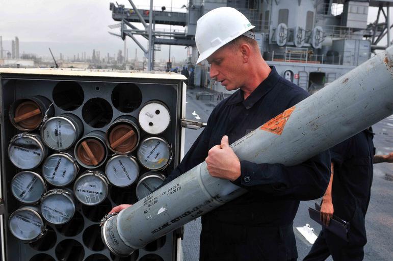 | Keywords: uss mount whitney (lcc 20) ussmountwhitneylcc20 augusta bay augustabay sicily outdoor 150930-N-VY489-053 AUGUSTA BAY, Sicily (Sept. 30, 2015) Chief Cryptologic Technician (Technical) Jonathan Plavcan loads chaff rounds inside a Mk36 super rapid bloom offboard countermeasures chaff and decoy launching system during an ammunition onload aboard the U.S. 6th Fleet command and control ship USS Mount Whitney (LCC 20) in Augusta Bay, Sicily, Sept. 30, 2015. Mount Whitney, is conducting naval operations in the U.S. 6th Fleet area of responsibility in support of U.S. national security interest in Europe. (U.S. Navy Photo by Mass Communications Specialist 1st Class Mike Wright/Released) 150930-N-VY489-053 AUGUSTA BAY, Sicily (Sept. 30, 2015) Chief Cryptologic Technician (Technical) Jonathan Plavcan loads chaff rounds inside a Mk36 super rapid bloom offboard countermeasures chaff and decoy launching system during an ammunition onload aboard the U.S. 6th Fleet command and control ship USS Mount Whitney (LCC 20) in Augusta Bay, Sicily, Sept. 30, 2015. Mount Whitney, is conducting naval operations in the U.S. 6th Fleet area of responsibility in support of U.S. national security interest in Europe. (U.S. Navy Photo by Mass Communications Specialist 1st Class Mike Wright/Released) |