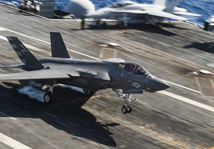 Keywords: ike f-35 f35 uss dwight d. eisenhower ussdwightdeisenhower atlantic ocean atlanticocean outdoor 151002-N-UY653-122. ATLANTIC OCEAN (Oct. 3, 2015) An F-35C Lightning II carrier variant joint strike fighter assigned to the Salty Dogs of Air Test and Evaluation Squadron (VX) 23 makes an arrested landing aboard the aircraft carrier USS Dwight D. Eisenhower (CVN 69). The F-35C Lightning II Pax River Integrated Test Force is currently conducting follow-on sea trials aboard the Eisenhower. (U.S. Navy photo by Mass Communication Specialist 3rd Class Utah Kledzik) 151002-N-UY653-122. ATLANTIC OCEAN (Oct. 3, 2015) An F-35C Lightning II carrier variant joint strike fighter assigned to the Salty Dogs of Air Test and Evaluation Squadron (VX) 23 makes an arrested landing aboard the aircraft carrier USS Dwight D. Eisenhower (CVN 69). The F-35C Lightning II Pax River Integrated Test Force is currently conducting follow-on sea trials aboard the Eisenhower. (U.S. Navy photo by Mass Communication Specialist 3rd Class Utah Kledzik) |
