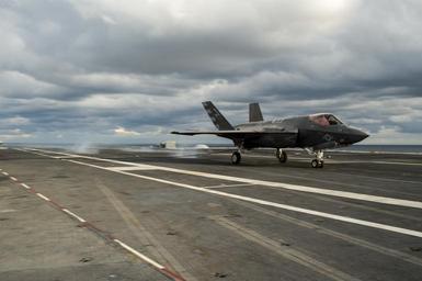 Keywords: ike f-35 f35 vx 23 vx23 uss dwight d. eisenhower ussdwightdeisenhower atlantic ocean atlanticocean outdoor 151004-N-QS750-108. ATLANTIC OCEAN (Oct. 4, 2015) - An F-35C Lightning II carrier variant joint strike fighter assigned to the Salty Dogs of Air Test and Evaluation Squadron (VX) 23 lands on the flight deck of the aircraft carrier USS Dwight D. Eisenhower (CVN 69). The F-35C Lightning II Pax River Integrated Test Force is currently conducting follow-on sea trials aboard the Eisenhower. (U.S. Navy photo by Mass Communication Specialist 3rd Class Corey Dill/Released) 151004-N-QS750-108. ATLANTIC OCEAN (Oct. 4, 2015) - An F-35C Lightning II carrier variant joint strike fighter assigned to the Salty Dogs of Air Test and Evaluation Squadron (VX) 23 lands on the flight deck of the aircraft carrier USS Dwight D. Eisenhower (CVN 69). The F-35C Lightning II Pax River Integrated Test Force is currently conducting follow-on sea trials aboard the Eisenhower. (U.S. Navy photo by Mass Communication Specialist 3rd Class Corey Dill/Released) |