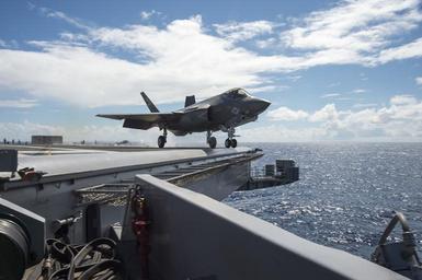 Keywords: ike f-35 f35 vx 23 vx23 flight ops flightops uss dwight d. eisenhower ussdwightdeisenhower atlantic ocean atlanticocean outdoor 151006-N-QS750-043 ATLANTIC OCEAN (Oct. 6, 2015) An F-35C Lightning II carrier variant joint strike fighter assigned to the Salty Dogs of Air Test and Evaluation Squadron (VX) 23 launches off the flight deck of the aircraft carrier USS Dwight D. Eisenhower (CVN 69). The F-35C Lightning II Pax River Integrated Test Force is currently conducting follow-on sea trials aboard the Eisenhower. (U.S. Navy photo by Mass Communication Specialist 3rd Class Corey Dill) 151006-N-QS750-043 ATLANTIC OCEAN (Oct. 6, 2015) An F-35C Lightning II carrier variant joint strike fighter assigned to the Salty Dogs of Air Test and Evaluation Squadron (VX) 23 launches off the flight deck of the aircraft carrier USS Dwight D. Eisenhower (CVN 69). The F-35C Lightning II Pax River Integrated Test Force is currently conducting follow-on sea trials aboard the Eisenhower. (U.S. Navy photo by Mass Communication Specialist 3rd Class Corey Dill) |