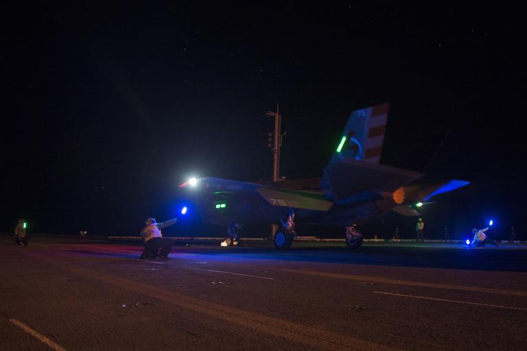 Keywords: cvn 69 cvn69 salty dogs saltydogs vx-23 vx23 f-35 f35 uss dwight d. eisenhower ussdwightdeisenhower atlantic ocean atlanticocean 151008-N-KK394-580. ATLANTIC OCEAN (Oct. 8, 2015) - An F-35C Lightning II carrier variant joint strike fighter assigned to the Salty Dogs of Air Test and Evaluation Squadron (VX) 23 takes off aboard the aircraft carrier USS Dwight D. Eisenhower (CVN 69). The F-35C Lightning II Pax River Integrated Test Force is currently conducting follow-on sea trials aboard the Eisenhower. (U.S. Navy photo by Mass Communication Specialist Seaman Anderson W. Branch/Released) 151008-N-KK394-580. ATLANTIC OCEAN (Oct. 8, 2015) - An F-35C Lightning II carrier variant joint strike fighter assigned to the Salty Dogs of Air Test and Evaluation Squadron (VX) 23 takes off aboard the aircraft carrier USS Dwight D. Eisenhower (CVN 69). The F-35C Lightning II Pax River Integrated Test Force is currently conducting follow-on sea trials aboard the Eisenhower. (U.S. Navy photo by Mass Communication Specialist Seaman Anderson W. Branch/Released) |