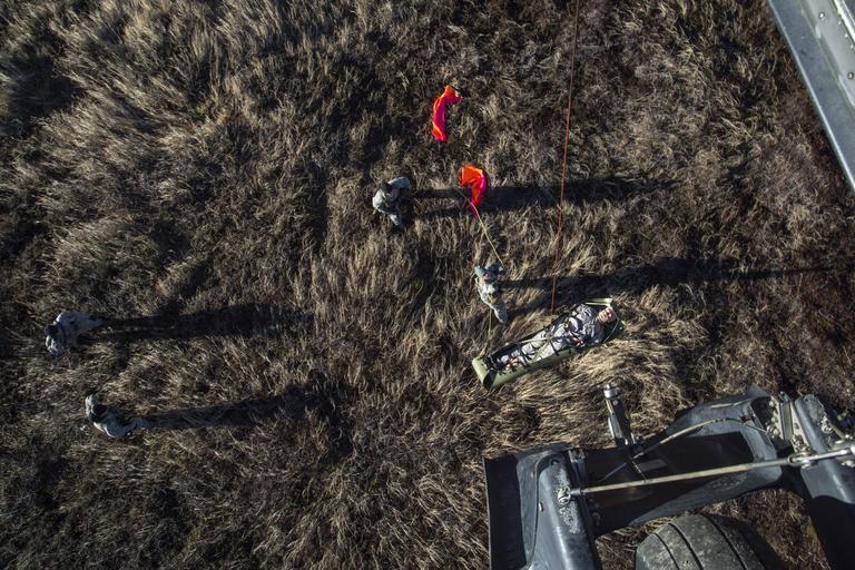 Keywords: rescue hoist training rescuehoisttraining alaska army national guard alaskaarmynationalguard army guard aviation armyguardaviation uh-60 black hawk helicopter uh60blackhawkhelicopter national guard nationalguard search and rescue searchandrescue joint base elmendorf-richardson jointbaseelmendorfrichardson alaska usa us outdoor U.S. Army Soldiers assigned to 1st Battalion (Airborne), 501st Infantry Regiment, guide a stretcher as it is hoisted up to a UH-60 Black Hawk helicopter assigned to 1st Battalion, 207th Aviation Regiment, while conducting casualty evacuation training on Joint Base Elmendorf-Richardson, Oct. 21, 2015. The CASEVAC training prepares units for future emergencies and maintains operational readiness. (U.S. Air Force photo/Alejandro Pena) U.S. Army Soldiers assigned to 1st Battalion (Airborne), 501st Infantry Regiment, guide a stretcher as it is hoisted up to a UH-60 Black Hawk helicopter assigned to 1st Battalion, 207th Aviation Regiment, while conducting casualty evacuation training on Joint Base Elmendorf-Richardson, Oct. 21, 2015. The CASEVAC training prepares units for future emergencies and maintains operational readiness. (U.S. Air Force photo/Alejandro Pena) |