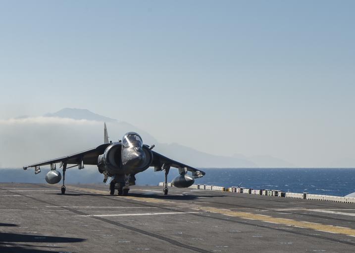 | Keywords: lhd 3; kearsarge; underway; av-8b harrier; usmc; egemen-15 lhd3kearsargeunderwayav8bharrierusmcegemen15 aegean sea aegeansea outdoor 151026-N-YL073-124 AEGEAN SEA (Oct. 26, 2015) An AV-8B Harrier takes off from the flight deck of the amphibious assault ship USS Kearsarge (LHD 3) during flight operations during Egemen 2015, Oct. 26, 2015. Egemen is a Turkish-led and hosted amphibious exercise designed to increase tactical proficiencies and interoperability among participants. Kearsarge, deployed as part of the Kearsarge Amphibious Ready Group, is conducting naval operations in the U.S. 6th Fleet area of operations in support of U.S. national security interests in Europe. (U.S. Navy Photo by Mass Communication Specialist 2nd Class Shamira Purifoy/Released) 151026-N-YL073-124 AEGEAN SEA (Oct. 26, 2015) An AV-8B Harrier takes off from the flight deck of the amphibious assault ship USS Kearsarge (LHD 3) during flight operations during Egemen 2015, Oct. 26, 2015. Egemen is a Turkish-led and hosted amphibious exercise designed to increase tactical proficiencies and interoperability among participants. Kearsarge, deployed as part of the Kearsarge Amphibious Ready Group, is conducting naval operations in the U.S. 6th Fleet area of operations in support of U.S. national security interests in Europe. (U.S. Navy Photo by Mass Communication Specialist 2nd Class Shamira Purifoy/Released) |