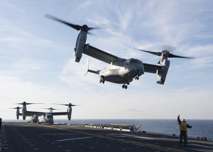 Keywords: uss kearsarge (lhd 3); npase; preston; 26th marine expeditionary usskearsargelhd3npasepreston26thmarineexpeditionary aegean sea aegeansea usa uss kearsarge (lhd 3); npase; preston; 26th marine expeditionary unit; lhd 3; underway; egemen; usskearsargelhd3npasepreston26thmarineexpeditionaryunitlhd3underwayegemen outdoor airplane vehicle aircraft 151027-N-AX638-097 AEGEAN SEA (Oct. 27, 2015) Aviation Boatswain’s Mate (Handling) Airman Johnathan Jackson, from Augusta, Georgia, directs an MV-22 Osprey to take off from the flight deck of the amphibious assault ship USS Kearsarge (LHD 3) while participating in Exercise Egemen 2015, Oct. 27. Egemen is a Turkish-led and hosted amphibious exercise designed to increase tactical proficiencies and interoperability among participants. Kearsarge, deployed as part of the Kearsarge Amphibious Ready Group, is conducting naval operations in the U.S. 6th Fleet area of operations in support of U.S. national security interests in Europe. (U.S. Navy Photo by Mass Communication Specialist Seaman Tyler Preston/Released) 151027-N-AX638-097 AEGEAN SEA (Oct. 27, 2015) Aviation Boatswain’s Mate (Handling) Airman Johnathan Jackson, from Augusta, Georgia, directs an MV-22 Osprey to take off from the flight deck of the amphibious assault ship USS Kearsarge (LHD 3) while participating in Exercise Egemen 2015, Oct. 27. Egemen is a Turkish-led and hosted amphibious exercise designed to increase tactical proficiencies and interoperability among participants. Kearsarge, deployed as part of the Kearsarge Amphibious Ready Group, is conducting naval operations in the U.S. 6th Fleet area of operations in support of U.S. national security interests in Europe. (U.S. Navy Photo by Mass Communication Specialist Seaman Tyler Preston/Released) |