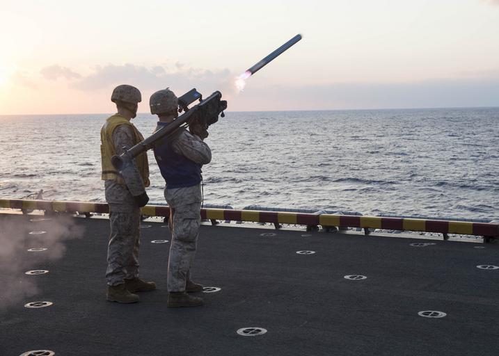 Keywords: uss kearsarge (lhd 3); npase; preston; 26th marine expeditionary unit; lhd 3; underway; stunger; marine usskearsargelhd3npasepreston26thmarineexpeditionaryunitlhd3underwaystungermarine mediterranean sea mediterraneansea usa stinger trainer launch system stingertrainerlaunchsystem outdoor 151029-N-AX638-091 MEDITERRANEAN SEA (Oct. 29, 2015) Cpl. Robert Stumpe, from East Stroudsburg, Pennsylvania, attached to the 26th Marine Expeditionary Unit, fires a stinger simulator from a Stinger Trainer Launch System while Cpl. Dylan Thompson, from Littleton, Colorado, acts as line coach on the flight deck aboard the amphibious assault ship USS Kearsarge (LHD 3), Oct. 29, 2015. Kearsarge, deployed as part of the Kearsarge Amphibious Ready Group, is conducting naval operations in the U.S. 6th Fleet area of operations in support of U.S. national security interests in Europe. (U.S. Navy Photo by Mass Communication Specialist Seaman Tyler Preston/Released) 151029-N-AX638-091 MEDITERRANEAN SEA (Oct. 29, 2015) Cpl. Robert Stumpe, from East Stroudsburg, Pennsylvania, attached to the 26th Marine Expeditionary Unit, fires a stinger simulator from a Stinger Trainer Launch System while Cpl. Dylan Thompson, from Littleton, Colorado, acts as line coach on the flight deck aboard the amphibious assault ship USS Kearsarge (LHD 3), Oct. 29, 2015. Kearsarge, deployed as part of the Kearsarge Amphibious Ready Group, is conducting naval operations in the U.S. 6th Fleet area of operations in support of U.S. national security interests in Europe. (U.S. Navy Photo by Mass Communication Specialist Seaman Tyler Preston/Released) |