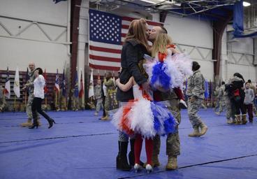 | Keywords: jber elmendorf richardson alaska ak valerie monroy valeriemonroy usa joint base elmendorf-richardson jointbaseelmendorfrichardson Spc. William Goodwin, assigned to the 98th Maintenance Company, 17th Combat Sustainment Support Battalion, U.S. Army Alaska, reunites with his wife Holly Goodwin, step-daughter Ashlynn Deer, 7, and daughter Maci Goodwin, 4, during a redeployment ceremony at the Buckner Physical Fitness Center, Wednesday, Nov. 4, 2015, on Joint Base Elmendorf-Richardson, Alaska. The "Wolverines" deployed to Southwest Asia for nine months in support of Operation Inherent Resolve, and Operation Enduring Freedom in Afghanistan. (U.S. Air Force Photo/Airman Valerie Monroy) Spc. William Goodwin, assigned to the 98th Maintenance Company, 17th Combat Sustainment Support Battalion, U.S. Army Alaska, reunites with his wife Holly Goodwin, step-daughter Ashlynn Deer, 7, and daughter Maci Goodwin, 4, during a redeployment ceremony at the Buckner Physical Fitness Center, Wednesday, Nov. 4, 2015, on Joint Base Elmendorf-Richardson, Alaska. The "Wolverines" deployed to Southwest Asia for nine months in support of Operation Inherent Resolve, and Operation Enduring Freedom in Afghanistan. (U.S. Air Force Photo/Airman Valerie Monroy) |