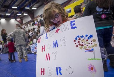 Keywords: joint base elmendorf-richardson jointbaseelmendorfrichardson alaska usa jber ak Ashlynn Deer, 7, waits for her step-father Spc. William Goodwin assigned to the 98th Maintenance Company, 17th Combat Sustainment Support Battalion, U.S. Army Alaska, before a redeployment ceremony to reunite Soldiers with their families at the Buckner Physical Fitness Center, Wednesday, Nov. 4, 2015, on Joint Base Elmendorf-Richardson, Alaska. The "Wolverines" deployed to Southwest Asia for nine months in support of Operation Inherent Resolve, and Operation Enduring Freedom in Afghanistan. (U.S. Air Force photo/Justin Connaher) Ashlynn Deer, 7, waits for her step-father Spc. William Goodwin assigned to the 98th Maintenance Company, 17th Combat Sustainment Support Battalion, U.S. Army Alaska, before a redeployment ceremony to reunite Soldiers with their families at the Buckner Physical Fitness Center, Wednesday, Nov. 4, 2015, on Joint Base Elmendorf-Richardson, Alaska. The "Wolverines" deployed to Southwest Asia for nine months in support of Operation Inherent Resolve, and Operation Enduring Freedom in Afghanistan. (U.S. Air Force photo/Justin Connaher)