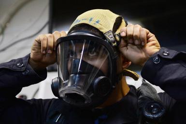 | Keywords: u.s. navy usnavy uss ross (ddg 71) ussrossddg71 151124-N-XT273-045 MEDITERRANEAN SEA (Nov. 24, 2015) Gas Turbine Systems Technician (Electrical) Fireman Justin Santis demonstrates the proper use of a Self-Contained Breathing Apparatus mask during egress training aboard USS Ross (DDG 71) Nov. 24, 2015. Ross, an Arleigh Burke-class guided-missile destroyer, forward deployed to Rota, Spain, is conducting naval operations in the U.S. 6th Fleet area of operations in support of U.S. national security interests in Europe. (U.S. Navy photo by Mass Communication Specialist 2nd Class Justin Stumberg/Released) 151124-N-XT273-045 MEDITERRANEAN SEA (Nov. 24, 2015) Gas Turbine Systems Technician (Electrical) Fireman Justin Santis demonstrates the proper use of a Self-Contained Breathing Apparatus mask during egress training aboard USS Ross (DDG 71) Nov. 24, 2015. Ross, an Arleigh Burke-class guided-missile destroyer, forward deployed to Rota, Spain, is conducting naval operations in the U.S. 6th Fleet area of operations in support of U.S. national security interests in Europe. (U.S. Navy photo by Mass Communication Specialist 2nd Class Justin Stumberg/Released) |