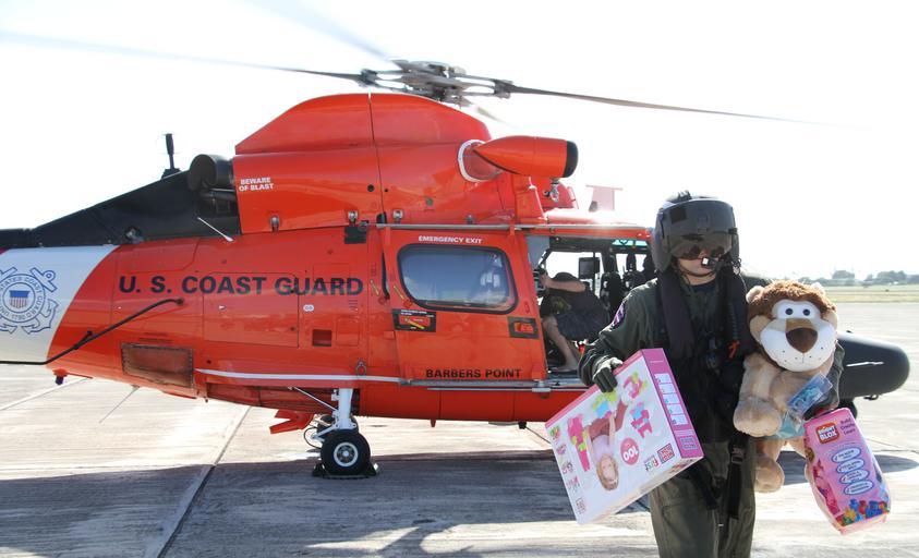 | Keywords: coast guard coastguard air station airstation barbers point barberspoint hawaii honolulu oahu toys for tots toysfortots marine corps marinecorps christmas mh-65 dolphin mh65dolphin helicopter holidays molle united states unitedstates us vehicle aircraft rotor blade outdoor Petty Officer 1st Class Daryk Brekke, an aviation maintenance technician at Coast Guard Air Station Barbers Point, offloads toys from an MH-65 Dolphin helicopter at Kalaeloa Airport on Oahu, Nov. 29, 2015. As part of the Toys for Tots program, Coast Guardsmen from Air Station Barbers Point collected toys and donations that will be taken to members of the Marine Corps and delivered to disadvantaged children for Christmas. (U.S. Coast Guard photo by Petty Officer 2nd Class Tara Molle/Released) Petty Officer 1st Class Daryk Brekke, an aviation maintenance technician at Coast Guard Air Station Barbers Point, offloads toys from an MH-65 Dolphin helicopter at Kalaeloa Airport on Oahu, Nov. 29, 2015. As part of the Toys for Tots program, Coast Guardsmen from Air Station Barbers Point collected toys and donations that will be taken to members of the Marine Corps and delivered to disadvantaged children for Christmas. (U.S. Coast Guard photo by Petty Officer 2nd Class Tara Molle/Released) |