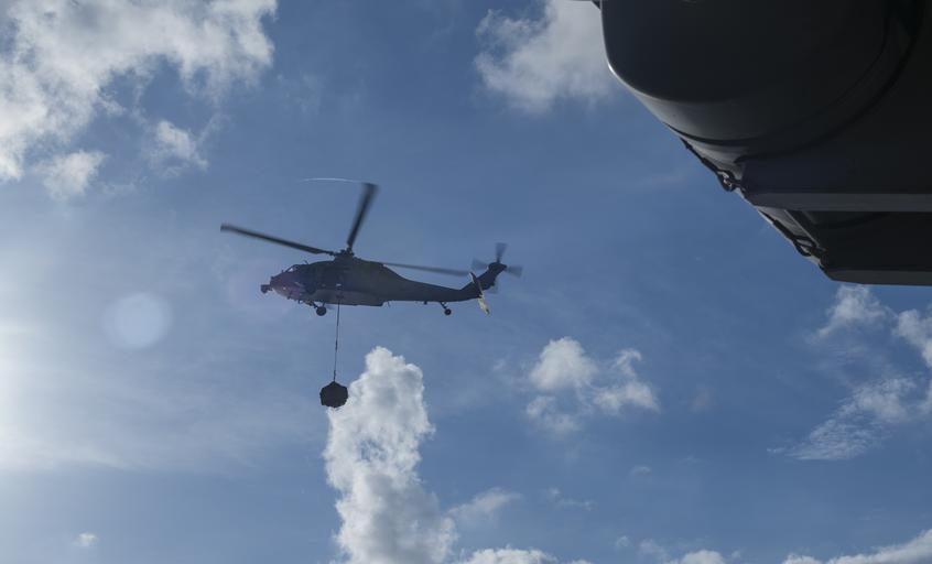 | Keywords: outdoor 151204-N-NX690-081 MEDITERRANEAN SEA (Dec. 4, 2015) An MH-60S Sea Hawk helicopter, assigned to the “Nightdippers” of Helicopter Sea Combat Squadron (HSC) 5, transfers cargo from aircraft carrier USS Harry S. Truman (CVN 75) during a vertical replenishment with fleet replenishment oiler USNS Leroy Grumman (T-AO 195). Harry S. Truman Carrier Strike Group is conducting naval operations in the U.S. 6th Fleet area of operations in support of U.S. national security interests in Europe and Africa. (U.S. Navy photo by Mass Communication Specialist 3rd Class J. M. Tolbert/Released) 151204-N-NX690-081 MEDITERRANEAN SEA (Dec. 4, 2015) An MH-60S Sea Hawk helicopter, assigned to the “Nightdippers” of Helicopter Sea Combat Squadron (HSC) 5, transfers cargo from aircraft carrier USS Harry S. Truman (CVN 75) during a vertical replenishment with fleet replenishment oiler USNS Leroy Grumman (T-AO 195). Harry S. Truman Carrier Strike Group is conducting naval operations in the U.S. 6th Fleet area of operations in support of U.S. national security interests in Europe and Africa. (U.S. Navy photo by Mass Communication Specialist 3rd Class J. M. Tolbert/Released) |