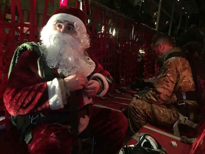 | Keywords: toy drop toydrop 16th sustainment brigade 16thsustainmentbrigade alzey rheinland-pfalz rheinlandpfalz germany de “Santa” realizes he almost forgot hearing protection prior to a jump conducted as part of the 5th Quartermaster Company’s Toy Drop here Dec. 7. More than 160 paratroopers, countless volunteers and two aircraft participated in the annual event, which delivered over 2,000 toys to needy children in the Kaiserslautern Military Community. (Photo by Sgt. 1st Class Michael O’Brien, 16th Sustainment Brigade Public Affairs) “Santa” realizes he almost forgot hearing protection prior to a jump conducted as part of the 5th Quartermaster Company’s Toy Drop here Dec. 7. More than 160 paratroopers, countless volunteers and two aircraft participated in the annual event, which delivered over 2,000 toys to needy children in the Kaiserslautern Military Community. (Photo by Sgt. 1st Class Michael O’Brien, 16th Sustainment Brigade Public Affairs) |