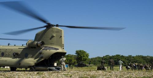 | Keywords: narcotics trafficking southern command southerncommand southcom central america centralamerica centam narcos drugs drug illicit southern approach southernapproach southern route southernroute honduras hn outdoor U.S. Army Sgt. David Pressnell, 1-228th Aviation Regiment flight engineer directs Honduran soldiers loading gear and personnel into the back of a U.S. Army CH-47 Chinook Dec. 16, 2015, in the Gracias a Dios Department (state) of Honduras during a troop movement the U.S. provides support to. The two day troop movement is a part of a larger operation called CARAVANA, which the U.S. has supported since October 2014, to assist the Honduran government in disrupting the flow of illicit trafficking through the area. (U.S. Air Force photo by Capt. Christopher Mesnard/Released) U.S. Army Sgt. David Pressnell, 1-228th Aviation Regiment flight engineer directs Honduran soldiers loading gear and personnel into the back of a U.S. Army CH-47 Chinook Dec. 16, 2015, in the Gracias a Dios Department (state) of Honduras during a troop movement the U.S. provides support to. The two day troop movement is a part of a larger operation called CARAVANA, which the U.S. has supported since October 2014, to assist the Honduran government in disrupting the flow of illicit trafficking through the area. (U.S. Air Force photo by Capt. Christopher Mesnard/Released) |