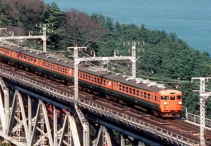 Keywords: 153series01.jpg en Japanese National Railways 153 series EMU of the prototype color on the express Izu service seen between Nebukawa and Manazuru in Tokaido main line own Shellparakeet 1981-04-03 1981 in rail transport in Japan JNR 153