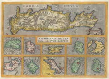 | Keywords: 1584 Ortelius Map of Crete (Candia) and 10 Greek Islands - Geographicus - CandiaInsula-ortelius-1584.jpg A rare and beautiful 1584 Abraham Ortelius map of Crete and ten other Greek islands Metellino Mitiline Lesbos Cerigo Scarpanto Karpathos Nicsia Naxos Santorini Milo Stalimene Limnos Negroponte Euboea Rodus Rhodes home of the Colossus of Rhodes and Scio Chios Beautiful rich hand color 1584 Size in 20 14 5 object history credit line accession number CandiaInsula-ortelius-1584 Geographicus-source PD-old-100 Old maps of Crete Old maps of Greece Maps in Latin 1584 maps |