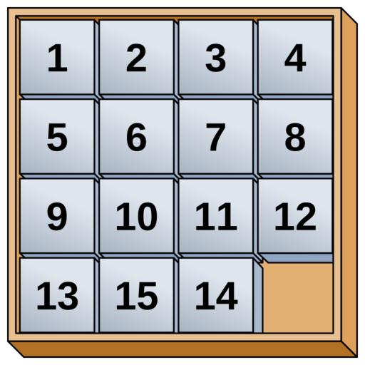 Keywords: 15-puzzle-loyd.svg unsolvable 15-14 variant of the 15-puzzle invented by Sam Loyd Image 15-puzzle svg en User Booyabazooka Image 15-puzzle svg Image 15-puzzle-shuffled svg Image 15-puzzle-loyd-bis svg 15 puzzles