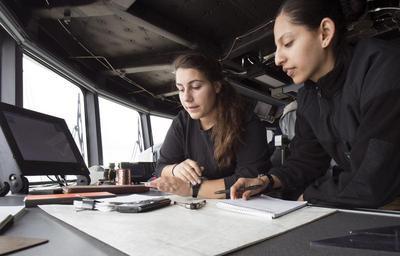 | Keywords: aps c6f usns spearhead navy partnership msc people indoor 160104-N-QF605-010 ATLANTIC OCEAN (Jan. 4, 2016) Gabrielle Marionakis, deck cadet, left, teaches Boatswain’s Mate 3rd Class Jessica Guerra how to calculate sunrise, sunset and dead reckoning aboard USNS Spearhead (T-EPF 1) Jan. 4, 2015. The Military Sealift Command expeditionary fast transport vessel USNS Spearhead is on a scheduled deployment to the U.S. 6th Fleet area of operations to support the international collaborative capacity-building program Africa Partnership Station. (U.S. Navy photo by Mass Communication Specialist 1st Class Amanda Dunford/Released) 160104-N-QF605-010 ATLANTIC OCEAN (Jan. 4, 2016) Gabrielle Marionakis, deck cadet, left, teaches Boatswain’s Mate 3rd Class Jessica Guerra how to calculate sunrise, sunset and dead reckoning aboard USNS Spearhead (T-EPF 1) Jan. 4, 2015. The Military Sealift Command expeditionary fast transport vessel USNS Spearhead is on a scheduled deployment to the U.S. 6th Fleet area of operations to support the international collaborative capacity-building program Africa Partnership Station. (U.S. Navy photo by Mass Communication Specialist 1st Class Amanda Dunford/Released) |