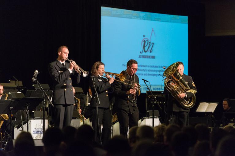 | Keywords: commodores jen navy navy band navyband big band bigband concert jazz swing concert band music 160108-N-NW255-003 Louisvile, Ky. (Jan. 8, 2016) (L to R) Musician 1st Class Jon Barnes, Chief Musician Jen Krupa, Senior Chief Musician Bill Mulligan, and Senior Chief Musician Matt Neff perform with the U.S. Navy Band Commodores jazz ensemble at the Jazz Education Network's annual conference. JEN is an organization dedicated to promoting jazz education and performance. (U.S. Navy photo by Chief Musician Melissa Bishop/Released) 160108-N-NW255-003 Louisvile, Ky. (Jan. 8, 2016) (L to R) Musician 1st Class Jon Barnes, Chief Musician Jen Krupa, Senior Chief Musician Bill Mulligan, and Senior Chief Musician Matt Neff perform with the U.S. Navy Band Commodores jazz ensemble at the Jazz Education Network's annual conference. JEN is an organization dedicated to promoting jazz education and performance. (U.S. Navy photo by Chief Musician Melissa Bishop/Released) |