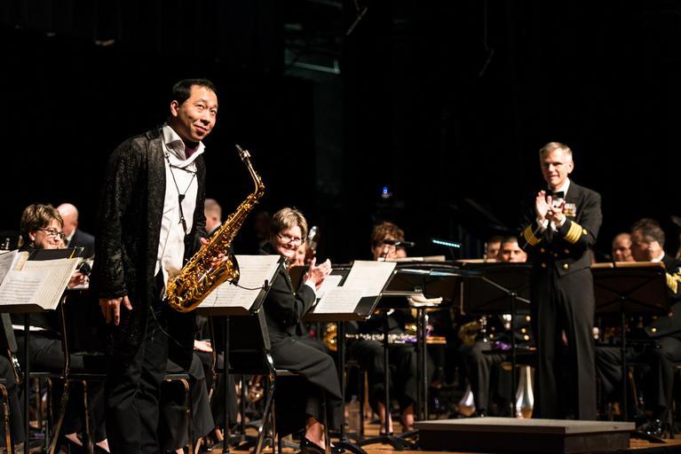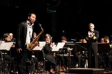 Keywords: sax symposium 2016 saxsymposium2016 music concert stage concert band musician people performer 160115-N-VV903-033 Winchester Va (Jan. 15, 2016)Saxophonist Kenneth Tse takes a bow after performing a solo with the Navy Band Concert Band to open the 38th annual International Saxophone Symposium. The free two-day event is held each January at the Shenandoah University in Winchester, Virginia and serves hundreds of saxophone students and professionals in addition to the concert-going public. (U.S. Navy photo by Musician 1st Class David Aspinwall/Released) 160115-N-VV903-033 Winchester Va (Jan. 15, 2016)Saxophonist Kenneth Tse takes a bow after performing a solo with the Navy Band Concert Band to open the 38th annual International Saxophone Symposium. The free two-day event is held each January at the Shenandoah University in Winchester, Virginia and serves hundreds of saxophone students and professionals in addition to the concert-going public. (U.S. Navy photo by Musician 1st Class David Aspinwall/Released) |