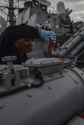 | Keywords: navy mediterranean cne-c6f cnec6f sixth fleet sixthfleet uss carney usscarney ddg 64 ddg64 160201-N-FP878-019 SOUDA BAY, Greece (Feb. 1, 2016) Gunner’s Mate 1st Class Jesse Gonzalez, from San Bernadino, California, performs maintenance on a mark 32 surface vessel torpedo tube aboard USS Carney (DDG 64) Feb. 1, 2016. Carney, an Arleigh Burke-class guided-missile destroyer, forward deployed to Rota, Spain, is conducting a routine patrol in the U. S. 6th Fleet area of operations in support of U.S. national security interests in Europe. (U.S. Navy photo by Mass Communication Specialist 1st Class Theron J. Godbold/Released) 160201-N-FP878-019 SOUDA BAY, Greece (Feb. 1, 2016) Gunner’s Mate 1st Class Jesse Gonzalez, from San Bernadino, California, performs maintenance on a mark 32 surface vessel torpedo tube aboard USS Carney (DDG 64) Feb. 1, 2016. Carney, an Arleigh Burke-class guided-missile destroyer, forward deployed to Rota, Spain, is conducting a routine patrol in the U. S. 6th Fleet area of operations in support of U.S. national security interests in Europe. (U.S. Navy photo by Mass Communication Specialist 1st Class Theron J. Godbold/Released) |