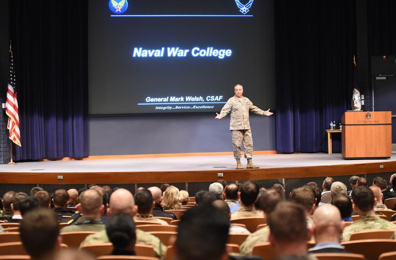 Keywords: auditorium hall room 160201-N-ZD845-014 NEWPORT, R.I. (Feb. 1, 2016) Gen. Mark Welsh III, Air Force chief of staff, speaks with U.S. Naval War College students, faculty and staff during a visit to the college, Feb. 1. During his presentation, Welsh addressed current issues facing the military and provided a question and answer session for those in attendance. (U.S. Navy photo by Daniel S. Marciniak/Released) 160201-N-ZD845-014 NEWPORT, R.I. (Feb. 1, 2016) Gen. Mark Welsh III, Air Force chief of staff, speaks with U.S. Naval War College students, faculty and staff during a visit to the college, Feb. 1. During his presentation, Welsh addressed current issues facing the military and provided a question and answer session for those in attendance. (U.S. Navy photo by Daniel S. Marciniak/Released) |