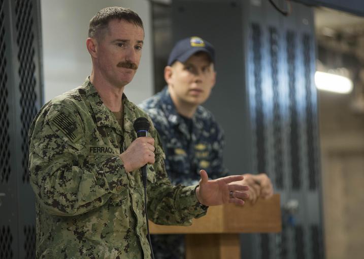 Keywords: amlep16 africa partnership station; africa partnership station 2016; aps africapartnershipstationafricapartnershipstation2016aps usns spearhead (t-epf 1) usnsspearheadtepf1 africa partnership station; africa partnership station 2016; aps16; aps; c6f; usns; spearhead; navy; partnership; military sealift command; u.s. navy; navy; africapartnershipstationafricapartnershipstation2016aps16apsc6fusnsspearheadnavypartnershipmilitarysealiftcommandusnavynavy groupshot people 160215-N-WV703-040 SEKONDI, Ghana (Feb. 15, 2016) Cmdr. Tim Ferracci, Africa Maritime Law Enforcement Partnership mission commander, addresses Ghanaian navy and combined boarding team members along with U.S. Navy and U.S. Coast Guard during an exercise debrief aboard USNS Spearhead (T-EPF 1) Feb. 15, 2016. The Military Sealift Command expeditionary fast transport vessel USNS Spearhead is on a scheduled deployment in the U.S. 6th Fleet area of operations to support the international collaborative capacity-building program Africa Partnership Station. (U.S. Navy photo by Mass Communication Specialist 3rd Class Amy M. Ressler/Released) 160215-N-WV703-040 SEKONDI, Ghana (Feb. 15, 2016) Cmdr. Tim Ferracci, Africa Maritime Law Enforcement Partnership mission commander, addresses Ghanaian navy and combined boarding team members along with U.S. Navy and U.S. Coast Guard during an exercise debrief aboard USNS Spearhead (T-EPF 1) Feb. 15, 2016. The Military Sealift Command expeditionary fast transport vessel USNS Spearhead is on a scheduled deployment in the U.S. 6th Fleet area of operations to support the international collaborative capacity-building program Africa Partnership Station. (U.S. Navy photo by Mass Communication Specialist 3rd Class Amy M. Ressler/Released) |