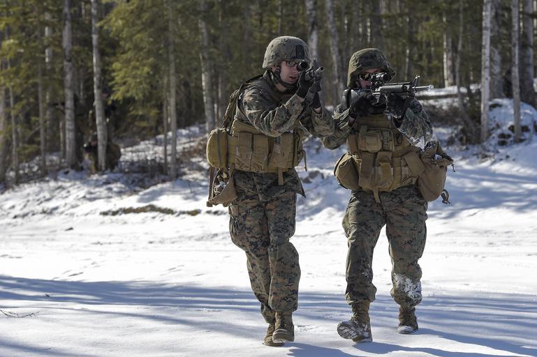 Keywords: 4th law enforcement battalion 4thlawenforcementbattalion mout military operation on urban terrain militaryoperationonurbanterrain military police militarypolice joint base elmendorf-richardson jointbaseelmendorfrichardson alaska usa us outdoor U.S. Marine Corps Lance Cpls. Nick Ruthruff, left, and Josh Harrison, assigned to Detachment Military Police Company D, 4th Law Enforcement Battalion, assault Baumeister City military operations on urban terrain (MOUT) complex at Joint Base Elmendorf-Richardson, Alaska, March 6, 2016. The MOUT training prepared the Marines for their upcoming deployment to Serbia where they will serve as military police advisors. (U.S. Air Force photo/Alejandro Peña) U.S. Marine Corps Lance Cpls. Nick Ruthruff, left, and Josh Harrison, assigned to Detachment Military Police Company D, 4th Law Enforcement Battalion, assault Baumeister City military operations on urban terrain (MOUT) complex at Joint Base Elmendorf-Richardson, Alaska, March 6, 2016. The MOUT training prepared the Marines for their upcoming deployment to Serbia where they will serve as military police advisors. (U.S. Air Force photo/Alejandro Peña) |