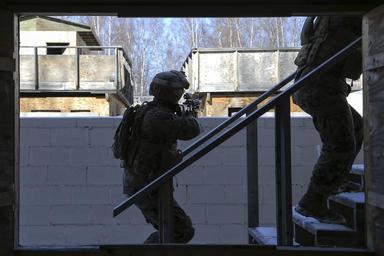 Keywords: 4th law enforcement battalion 4thlawenforcementbattalion mout military operation on urban terrain militaryoperationonurbanterrain military police militarypolice joint base elmendorf-richardson jointbaseelmendorfrichardson alaska usa us Marines assigned to Detachment Military Police Company D, 4th Law Enforcement Battalion conduct military operations on urban terrain (MOUT) training at Baumeister City MOUT complex at Joint Base Elmendorf-Richardson, Alaska, March 6, 2016. The training prepared the Marines for their upcoming deployment to Serbia where they will serve as military police advisors. (U.S. Air Force photos/Alejandro Peña) Marines assigned to Detachment Military Police Company D, 4th Law Enforcement Battalion conduct military operations on urban terrain (MOUT) training at Baumeister City MOUT complex at Joint Base Elmendorf-Richardson, Alaska, March 6, 2016. The training prepared the Marines for their upcoming deployment to Serbia where they will serve as military police advisors. (U.S. Air Force photos/Alejandro Peña) |