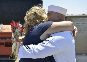 Keywords: arrival events homecoming ssn 775 ssn775 uss texas usstexas pearl harbor pearlharbor hawaii united states unitedstates us outdoor PEARL HARBOR (March 9, 2016) Culinary Specialist 1st Class James Cox of Chico, Calif., kisses his wife, Samantha, following the return of the Virginia-class fast-attack submarine USS Texas (SSN 775) to Pearl Harbor after completing a scheduled Western Pacific deployment. (U.S. Navy photo by Mass Communication Specialist 2nd Class Michael H. Lee/Released) PEARL HARBOR (March 9, 2016) Culinary Specialist 1st Class James Cox of Chico, Calif., kisses his wife, Samantha, following the return of the Virginia-class fast-attack submarine USS Texas (SSN 775) to Pearl Harbor after completing a scheduled Western Pacific deployment. (U.S. Navy photo by Mass Communication Specialist 2nd Class Michael H. Lee/Released)