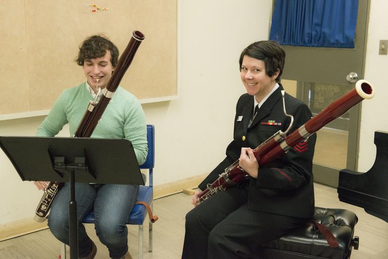| Keywords: indoor AMHERST, MASS (Mar. 7, 2016) Musician First Class Jennifer Stokes coaches a student during a masterclass at UMass, Amherst Monday morning; part of the band's mission to provide outreach and education. The U.S. Navy Band is on a 25-day tour of the northeastern United States. (U.S. Navy photo by Chief Musician Melissa Bishop/Released) AMHERST, MASS (Mar. 7, 2016) Musician First Class Jennifer Stokes coaches a student during a masterclass at UMass, Amherst Monday morning; part of the band's mission to provide outreach and education. The U.S. Navy Band is on a 25-day tour of the northeastern United States. (U.S. Navy photo by Chief Musician Melissa Bishop/Released) |